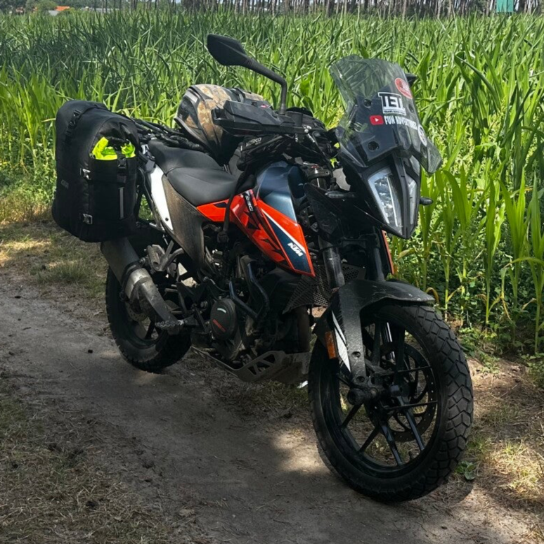 Als eerst is er al aardig wat op gegaan vanuit de dealer zelf. Ik heb hem met skidplate, quickshifter, valbeugels, handvat verwarming, bescherming op de as van de wielen, extra ketting beschermers, originele KTM zijtassen en andere ketting. Er zat dus al best veel op. Maar het kan nog beter.