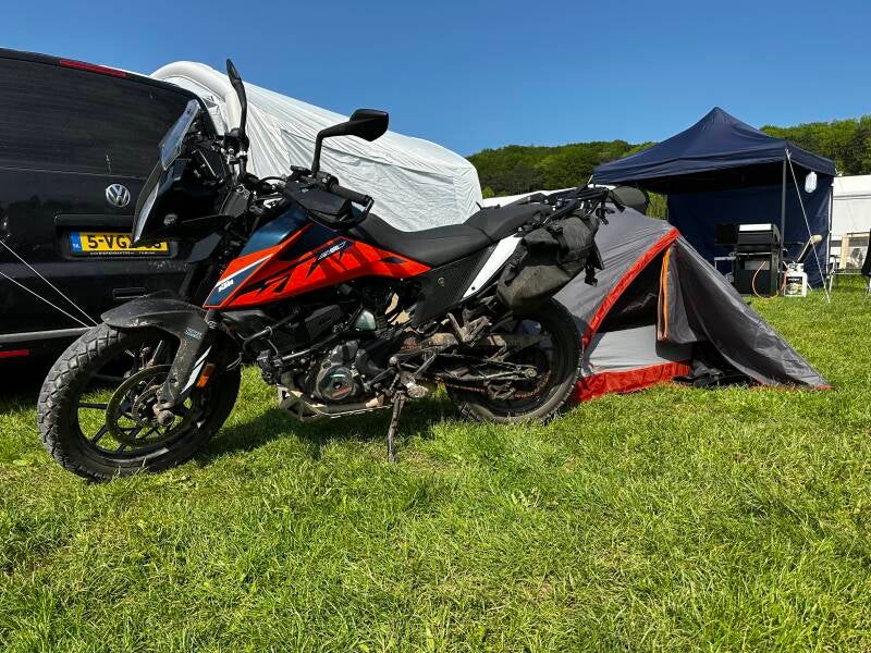 Kijk, de motor is compleet en ik ben overal over te spreken. Ook begin ik steeds meer zelfvertrouwen te krijgen in het offroad rijden met de motor. Dus het is tijd voor een tochtje. Maar die originele tasjes zijn toch wel ineens erg klein. Ze zijn perfect voor dagtochtjes. Meer dan voldoende plek voor je lunch, wat te drinken en gereedschap voor als het tegen zit. Maar voor een weekend weg kom je toch echt te kort. Dus hiervoor hen ik de 48l tas van Lone-Rider besteld. Toen kon alles wel mee. En ja, ik heb mijn kleine scherm weer terug gezet om wat meer rijwind koeling te hebben :)
